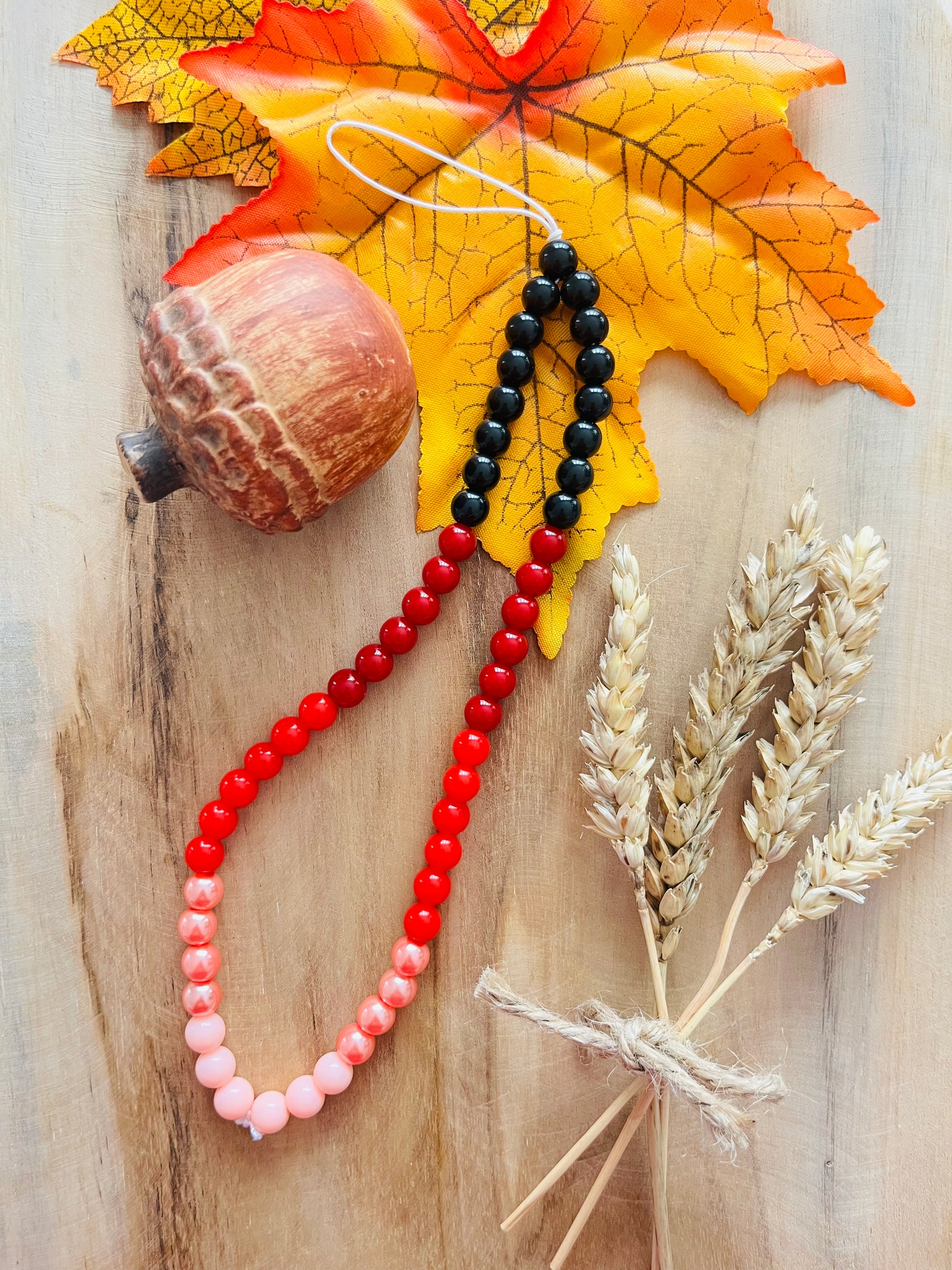 Bijou de téléphone de la collection AMBRE en perles fantaisie réalisé avec un fil en nylon